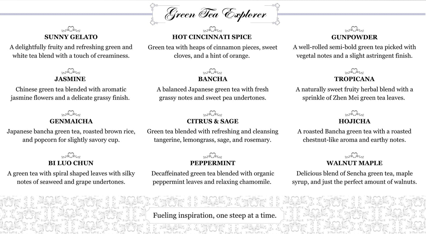 This set includes an expansive selection of green teas. From purist teas to flavored, explore all that green tea has to offer.